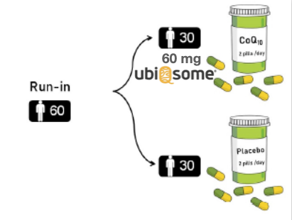 60 patients with statin associated muscle pain and weakness, given either 60 mg UBIQSOME or placebo for 8 weeks – AND critically, they stayed on the statin.